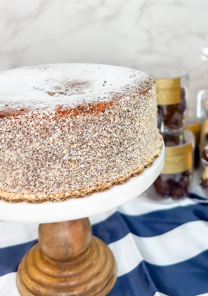 Flourless vanilla cake layered with dairy free chocolate cream $46